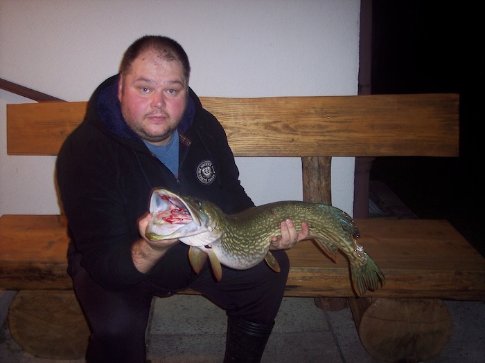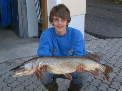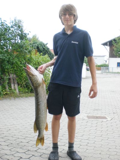 Florian Blenninger fing am 19.05.2012, beim Vereinsausflug am Freudensee, bei Hauzenberg, einen Hecht von 83 cm. Das Equipment (Angel) wurde von Gobmeier Thomas zu Verfügung gestellt. Verwertet und Küchenfertig gemacht wurde der Fisch von Maximilian Heinrich. |