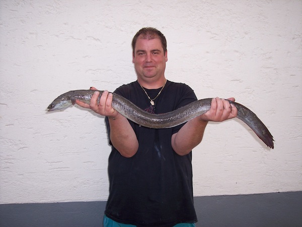 Andreas Johnke fing im August 2008 einen Aal von 108 cm und ein Gewicht von 1850g im Alfred-Erl-Weiher |