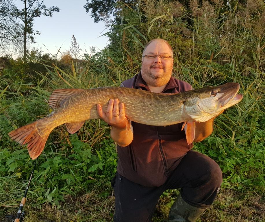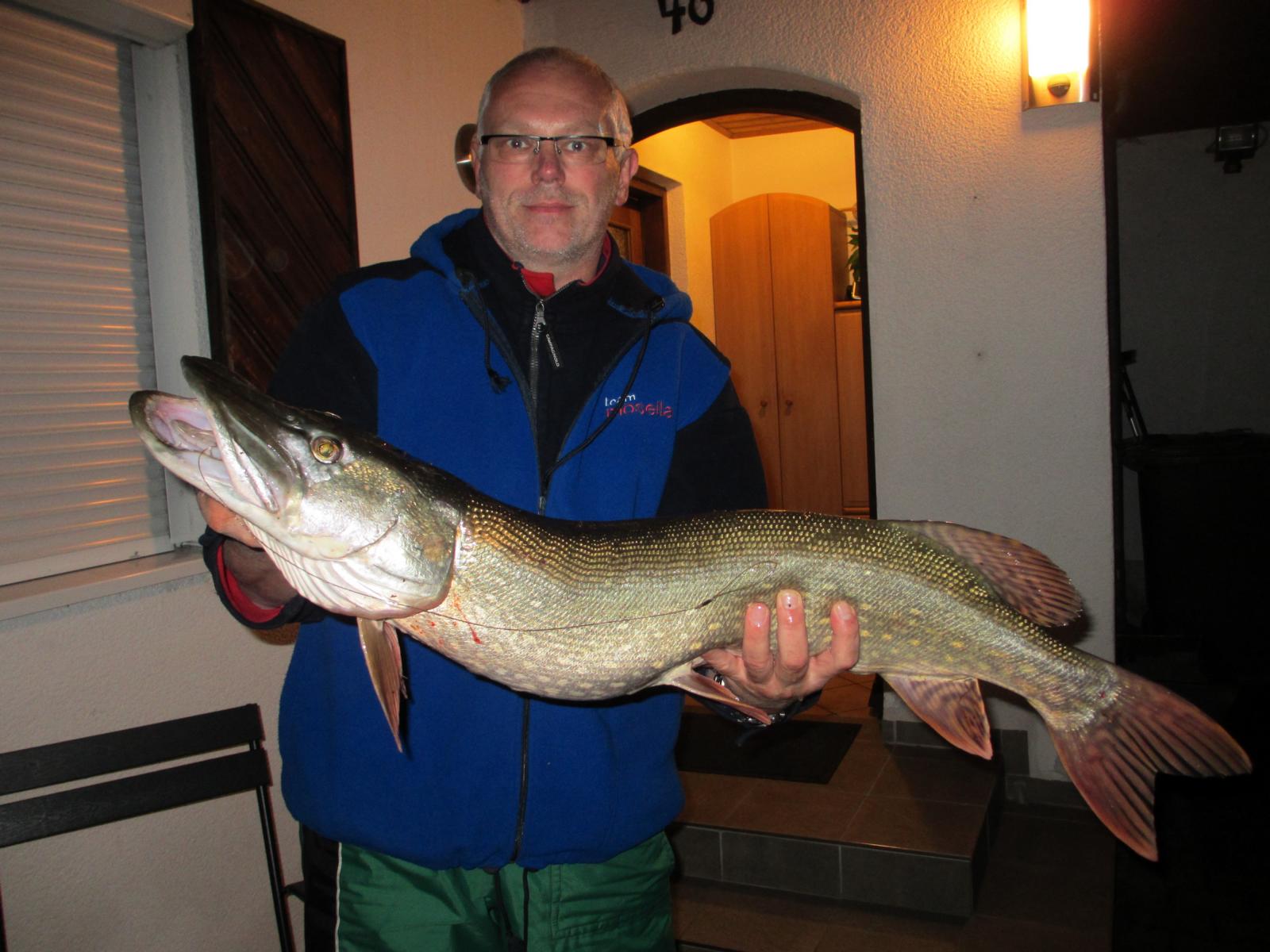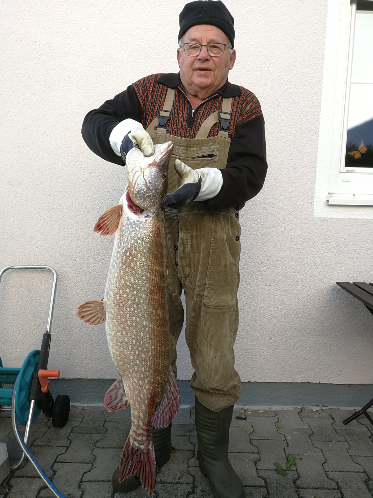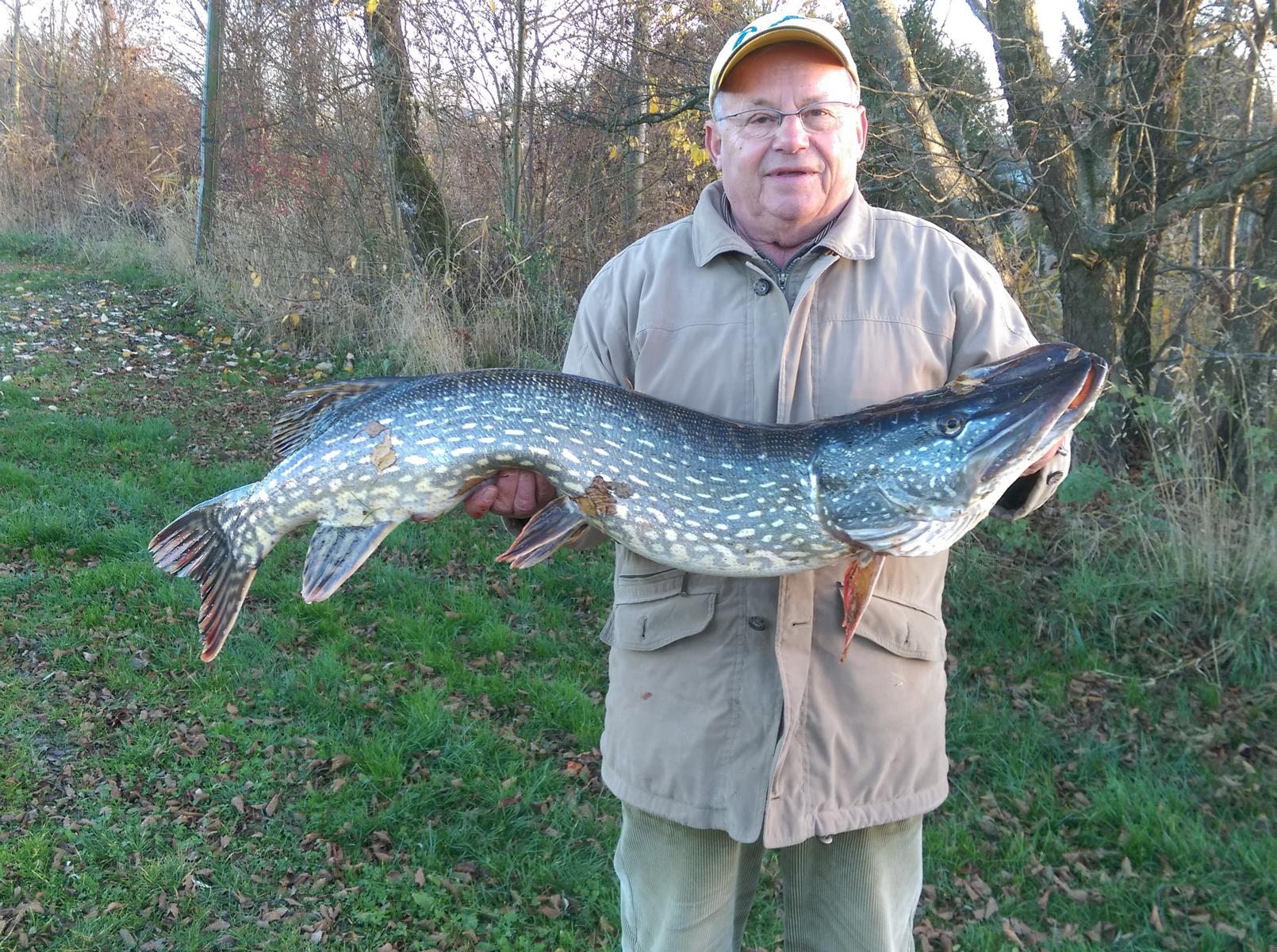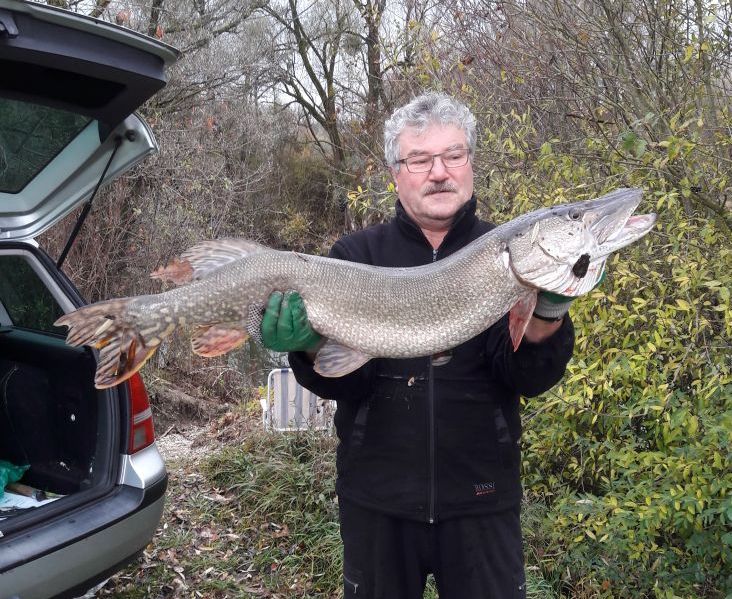 Am 06.11.2017 fing Günter Lewa eine schöne Hechtdame mit 100cm. Gewicht: ---- Köder: toter Köderfisch Gewässer: Alfred-Erl-Weiher